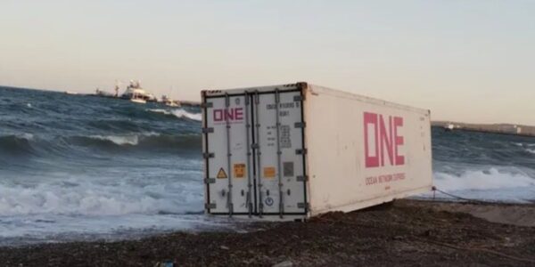 El objeto encalló en la costa tras caer al agua debido a los fuertes vientos. Cuál era el destino original del container.